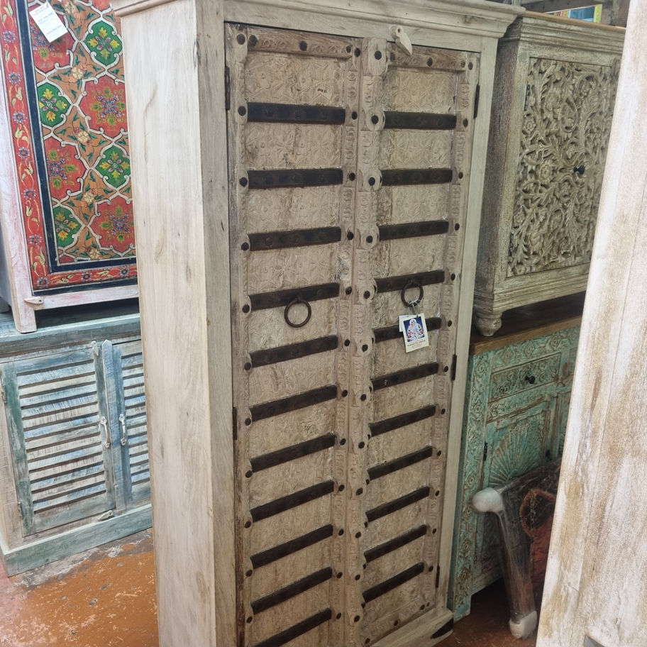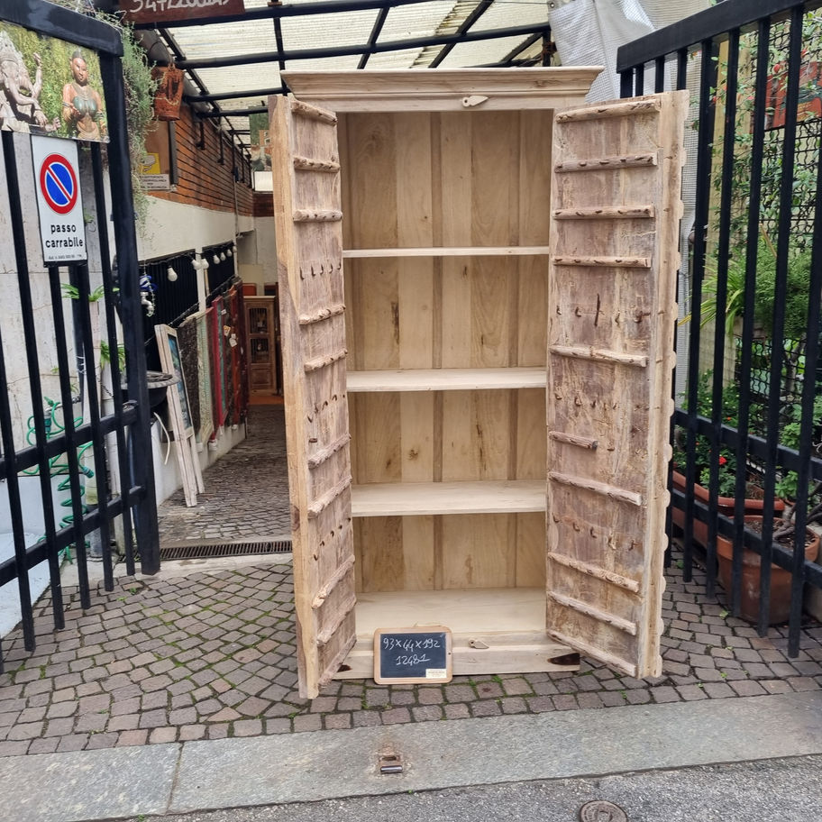 Armadio coloniale in legno naturale con 2 ante e 4 divisori