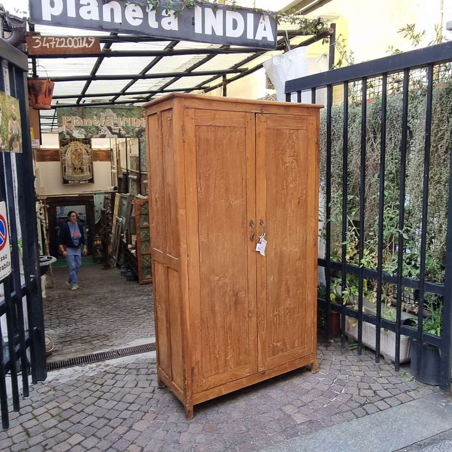 Epoca colonilale questo armadio indiano. Tutto in teak, eccezionale la venatura , due ante, ripiano interno con cassetto e maniglia originale in ottone ai cui lati troviamo due vani segreti per riporre odìggetti prezioni e denaro contante.