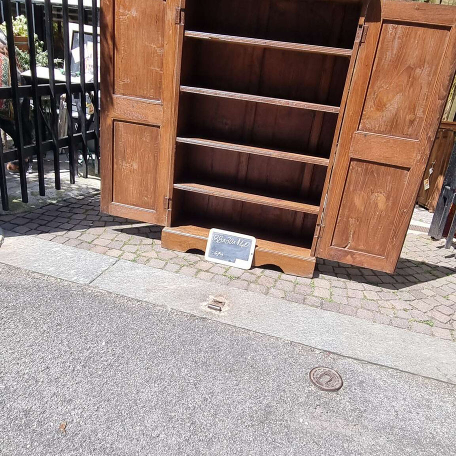 Armadio compatto in teak naturale con linee semplici e due ante. Armadio in legno massello di teak con finitura naturale, due ante a pannelli riquadrati e base sagomata. La struttura solida e le proporzioni contenute lo rendono adatto anche a spazi più piccoli, offrendo un'elegante soluzione di contenimento in stile rustico o country.