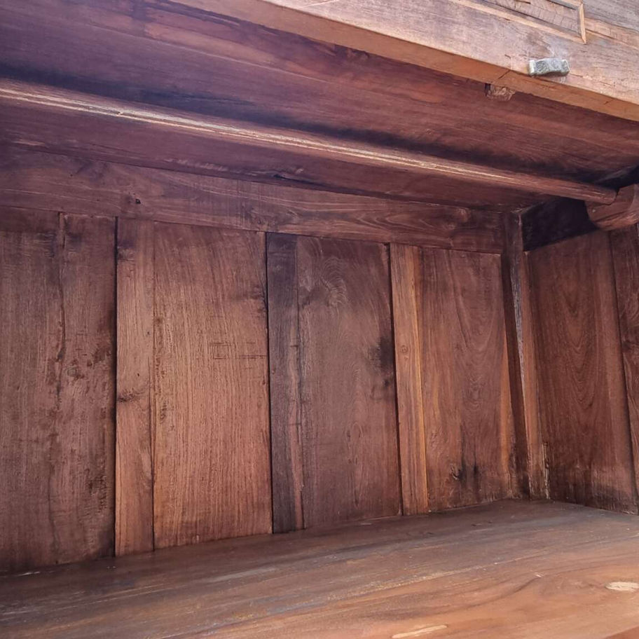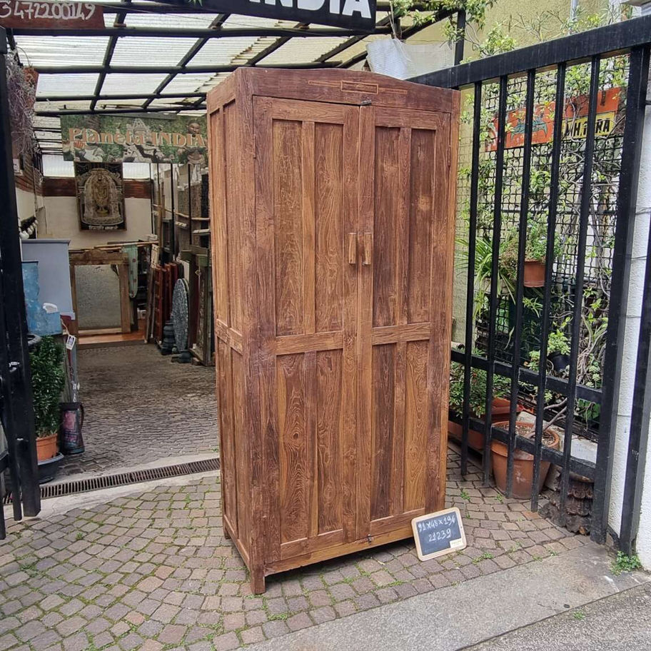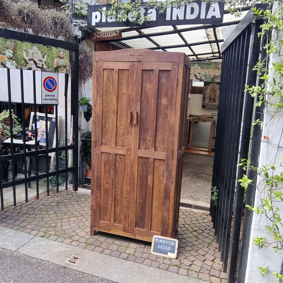 Armadio in teak massello a due ante, dal design rustico e lineare.Veramente pratico,con I suoi molteplici ripiani,per riporre un po'di tutto.Maniglie in legno.Questo armadio realizzato in legno di teak massello presenta un design essenziale e solido, perfetto per ambienti rustici o etnici. Le due grandi ante a pannelli verticali donano un aspetto deciso e robusto, mentre l'altezza generosa garantisce ampio spazio per riporre vestiti, biancheria o oggetti voluminosi. Ideale per camere da letto, ingressi o seconde case arredate in stile naturale.