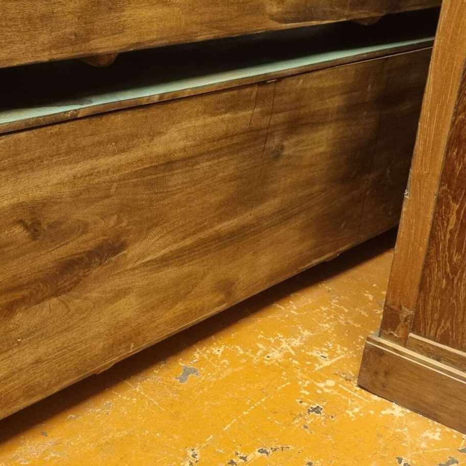 Splendido baule turchese in teak. \n \nPuo'essere usato anche come cassapanca.