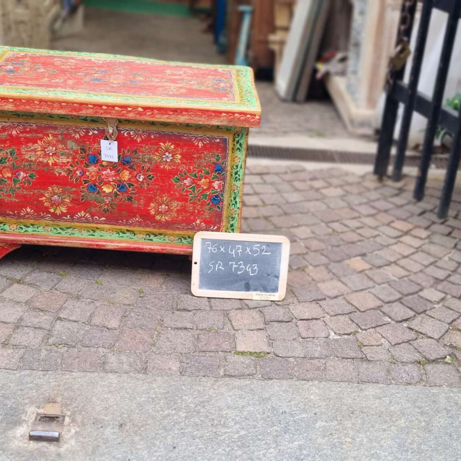 Il rosso e'il colore protagonista di questo baule.Se hai bisogno di dare un colpo di colore rosso , questo e'il baule che fa per te