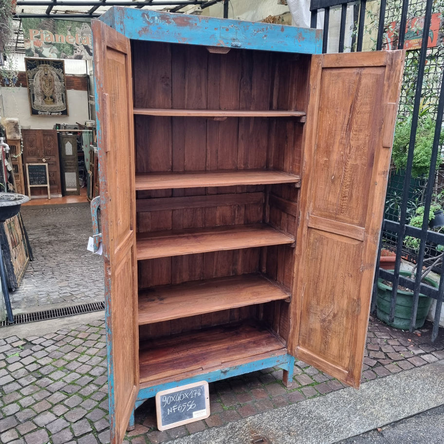Straordinario armadio etnico di colore azzurro. Molto spazioso e utile per impreziosire un ambiente etnico.