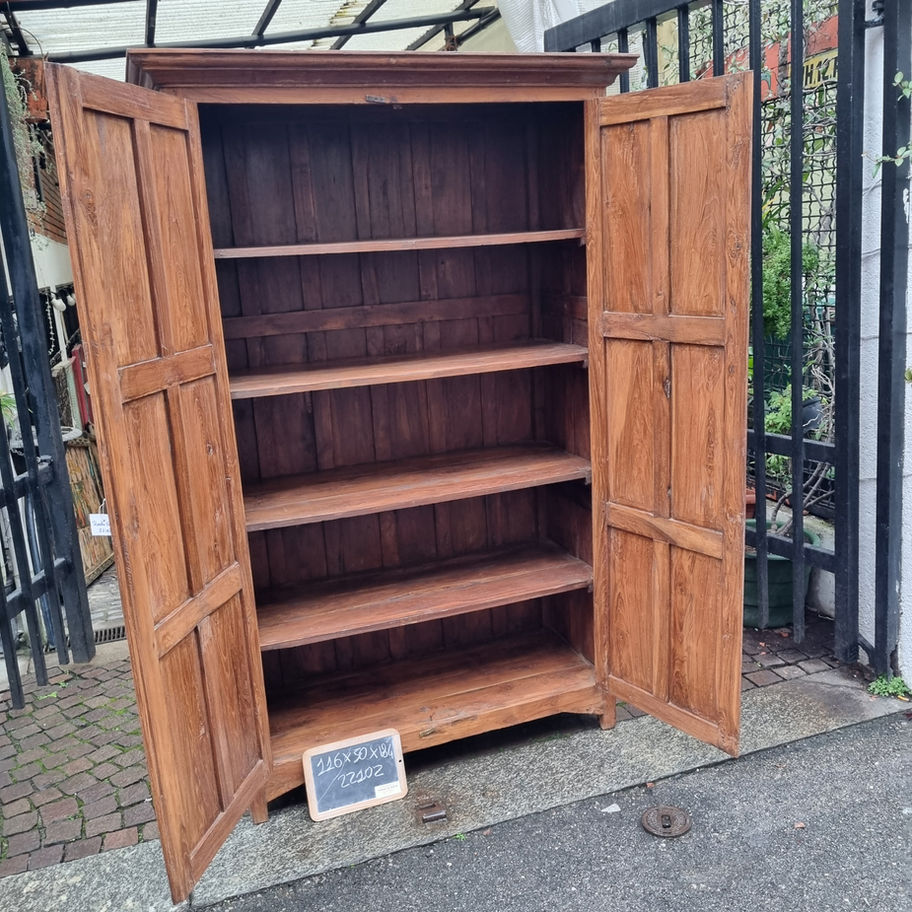 Affascinante armadio in stile etnico realizzata in legno massello, caratterizzata da una struttura robusta con divisori interni che creano scomparti funzionali. Il design coloniale è esaltato da pannelli squadrati sul frontale e dalla finitura in tonalità marrone naturale. Perfetta per chi ricerca un pezzo autentico che unisce utilità e carattere vintage in ambienti dall'arredamento ricercato.