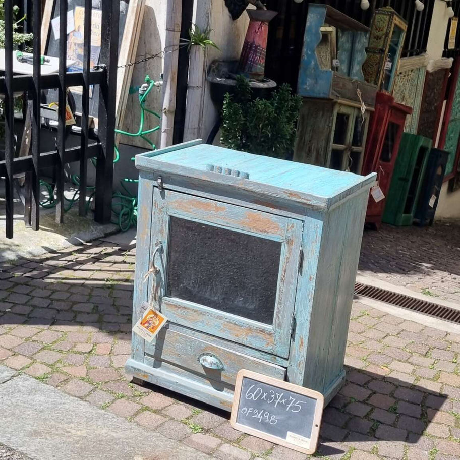 Mobiletto Azzurro Decapato con anta in vetro