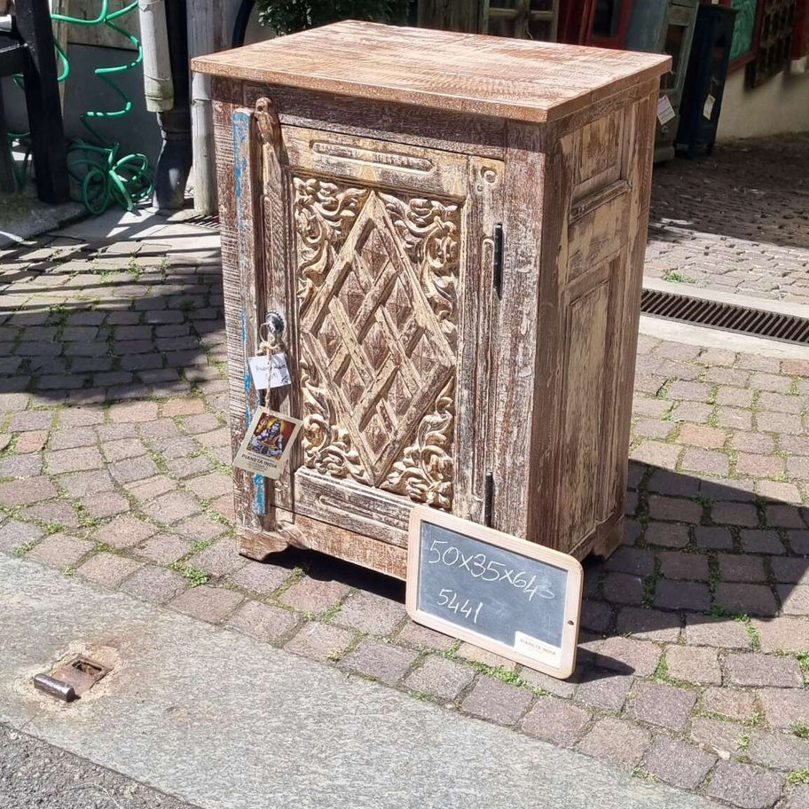 Mobiletto intagliato con anta decorativa