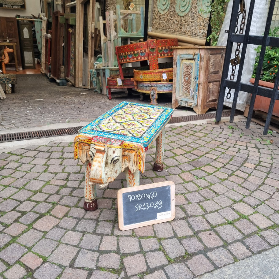 Suggestiva panca con dettagli dipinti a mano. Forma che ricorda quella di un animale.
