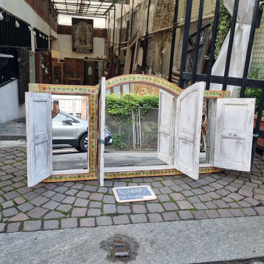 Bellissima specchiera che si sviluppa orizziontalmente con un arco nella parte centrale. Decorato con motivi floreali che rendono questo articolo davvero unico