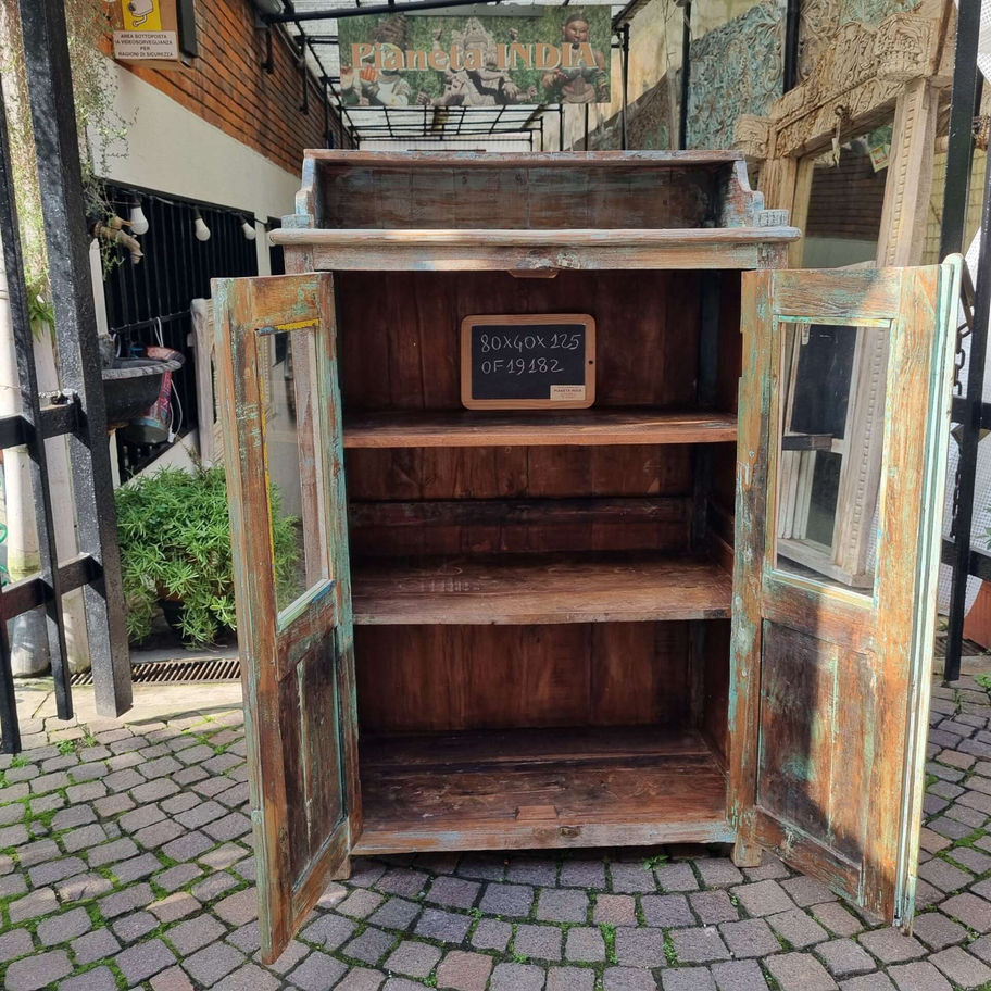 Vetrinetta in legno massello, rifinita con un elegante effetto decapato, dotata di ante a vetro e ripiano superiore. Un pezzo d’arredo rustico e funzionale, ideale per esporre oggetti e dare un tocco shabby chic all’ambiente. Questa vetrinetta artigianale, realizzata in legno massello, presenta un’affascinante finitura decapata che mette in risalto le venature naturali e regala un aspetto vissuto. Le ante frontali con vetro permettono di esporre stoviglie, libri o oggetti decorativi, mentre il ripiano superiore, parzialmente incassato, offre uno spazio extra per appoggiare piante o soprammobili. Con dimensioni approssimative di 80×40×125 cm, si integra perfettamente in ambienti dallo stile shabby chic, rustico o country, aggiungendo calore e personalità all’arredo.