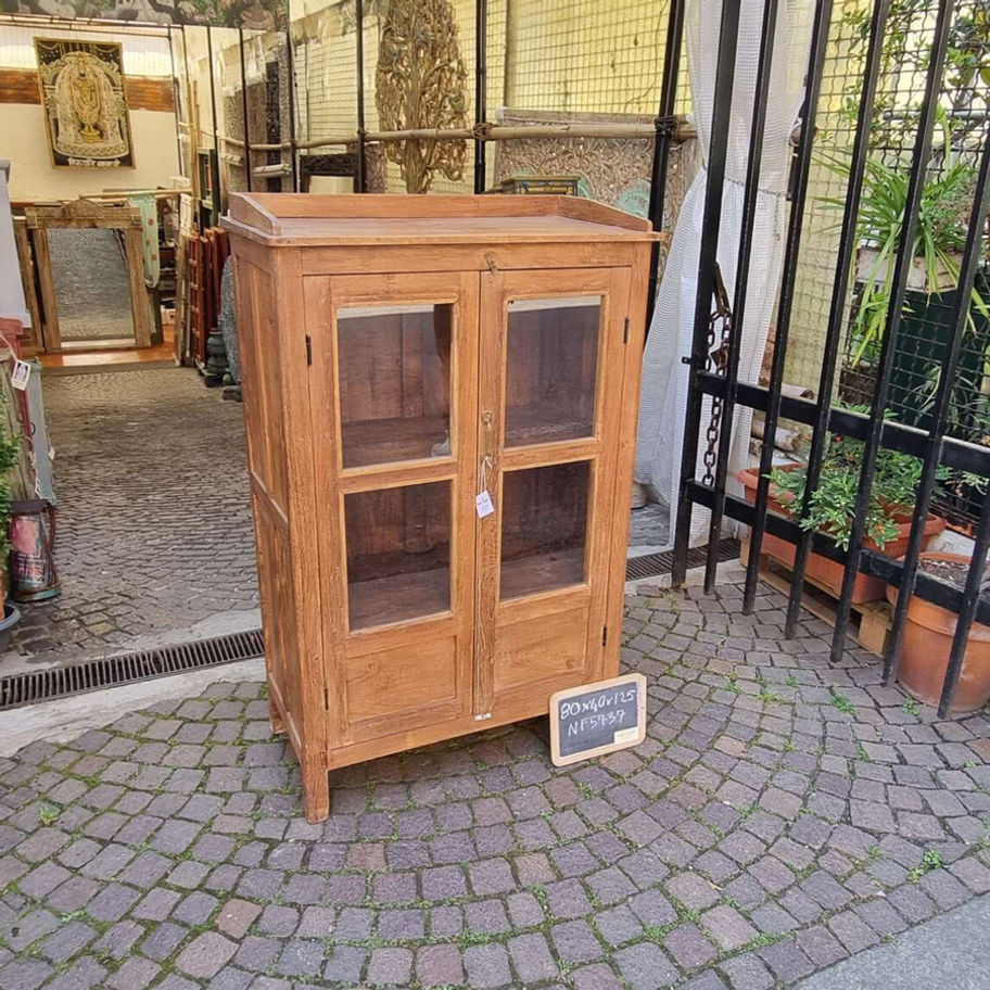 Vetrinetta in teak con doppia anta e ampie superfici vetrate, dal design semplice ed essenziale Questa vetrinetta in teak naturale si distingue per la linearità del suo design e la sua struttura solida. Le ante in vetro permettono una chiara visione degli oggetti esposti all’interno, rendendola ideale per valorizzare ceramiche, libri o oggetti d'arredo. Adatta sia a contesti rustici che moderni.